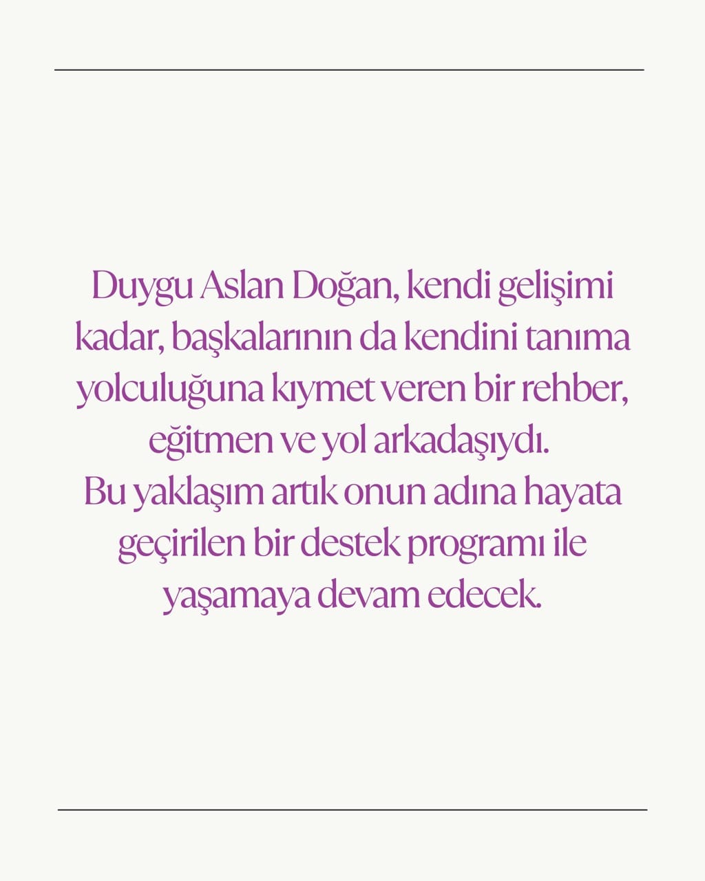 Bolu Kartalkaya Kayak Merkezi’nde yaşanan ve 78 kişinin hayatını kaybettiği o elim günün üzerinden koca bir yıl geçti. Acı yerinde duruyor elbet ama hatırlama biçimimiz değişiyor. Bugün, kaybettiklerimizi anarken, onların hayatımıza bıraktıkları izleri yaşatmayı seçiyoruz. Onlardan biri de hatırasıyla bize rehberlik eden Duygu Doğan’dı. Duygu, hayata hep bir yerinden tutunarak bakan, yeni başlangıçlara kalbini açan, öğrenmeye hevesle yaklaşan ve insanın kendini tanıma yolculuğunu çok kıymetli bulan bir eğitmen, bir rehber, bir yol arkadaşıydı. Kendi gelişimi kadar, başkalarının da iç sesini duyabilmesine alan açmayı önemserdi. “Yeni şeyler öğrenmek ya da bildiklerimi bugünkü benle tazelemek bana hep ilham verir” diyen Duygu, başlangıçlardaki kaygıyı yok saymadan, yolda olmanın kendine özgü bir bilgeliği olduğuna inanır, her şeye rağmen yolun akacağına güvenirdi. Bu yaklaşım artık Duygu adına hayata geçirilen bir destek programı ile yaşamaya devam edecek. Duygu’nun, eşi Mert’le birlikte sonsuzluğa uğurladığımız kızları Mavi ve Doğa’nın geleceği için dileyeceğine inandığımız bu kapsayıcı, farkındalıklı öğrenme yolculuğunu bugün en az onlar kadar pırıl pırıl 200 öğrenciye sunmanın vicdani hafifliğini ve gururunu yaşıyoruz.